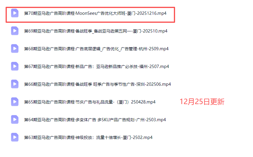 - | └──第70期亚马逊广告高阶课程·MoonSees广告优化大师班-厦门-20251216.mp4