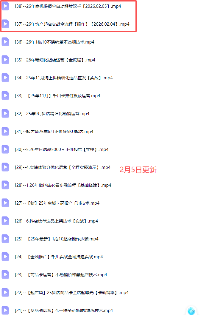 ├──[36]–26年1拖10不清销量不违规技术.mp4 95.09M - ├──[37]–26年坑产起店实战全流程【操作】【2026.02.04】.mp4