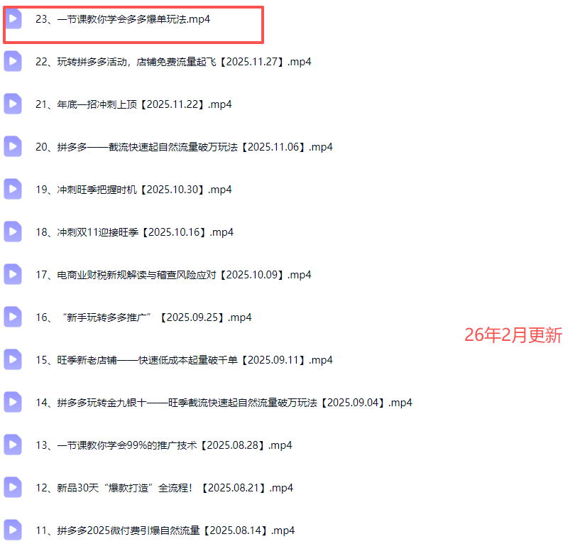 电霸学堂2026年拼多多电商运营教程冲刺双十一(价值4980元)