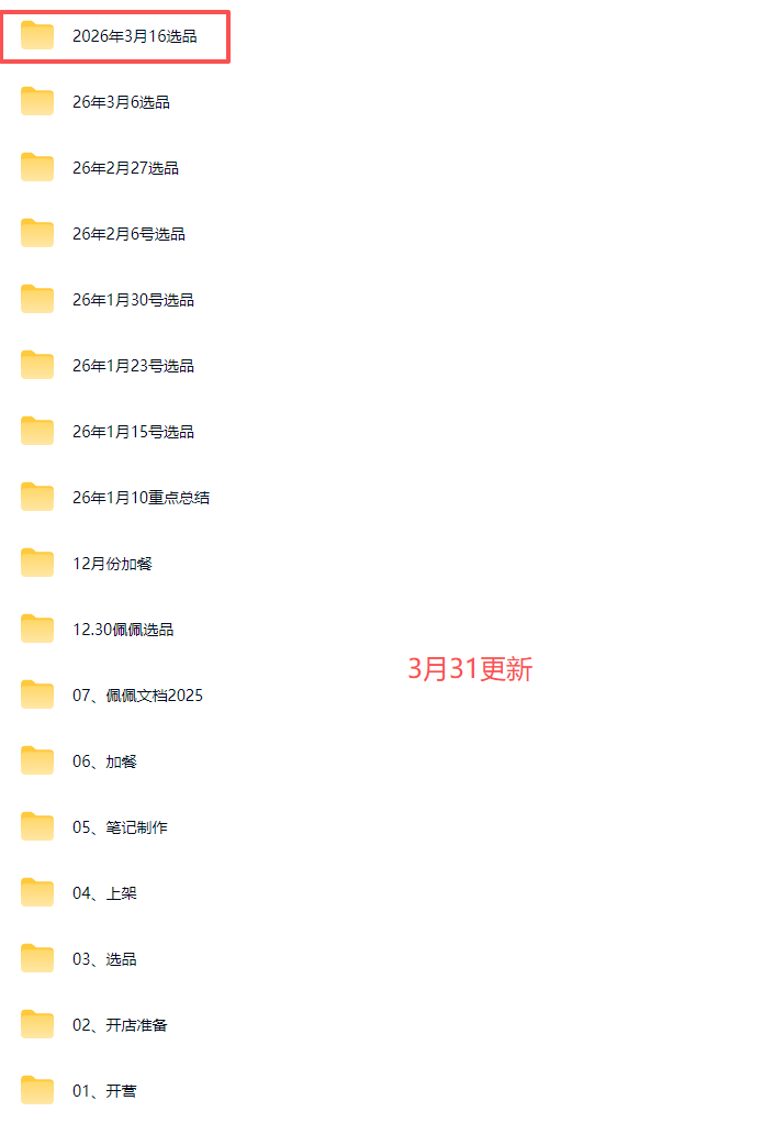 - 3月31日更新:3月16号选品