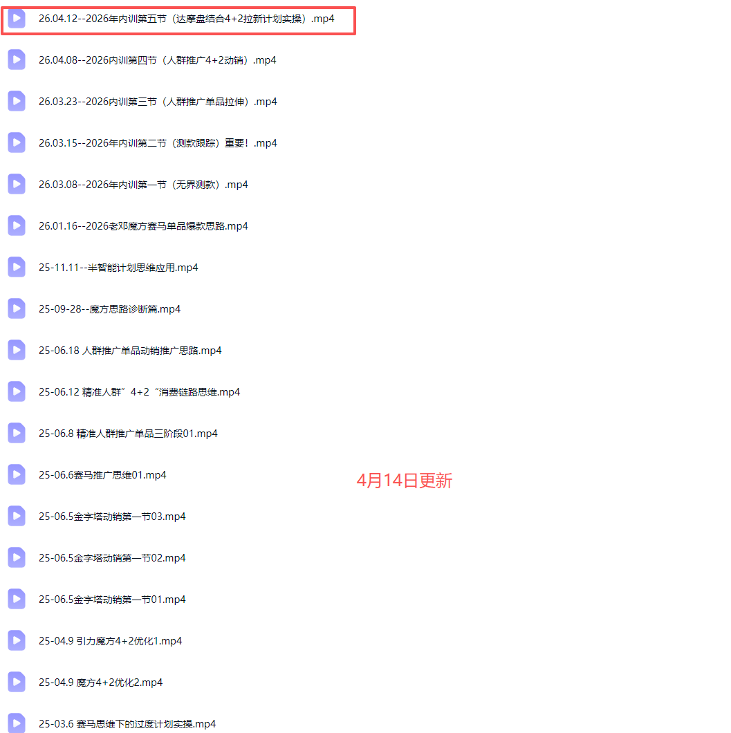 - #26年4月14同步更新1节!!26.04.12–2026年内训第五节(达摩盘结合4+2拉新计划实操).mp4